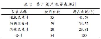 國內目前使用比較流行的蒸汽流量計有孔板流量計、渦街流量計等。表2對某廠1990年在用的流量計進行了初步統計,表明孔板流量計和渦街流量計的使用占有主流地位。