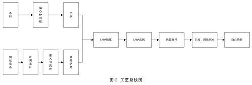1.1 偏心爐+LF 爐雙聯冶煉工藝,鋼包冷調、熱裝飽和蒸汽流量計工藝路線圖簡介如圖 1。