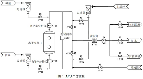整個(gè) APU 都是通過 PLC 程序自動控制的。程序通過控制閥門的開關(guān)使不同的液體按順序進(jìn)入離子交換柱,使離子交換柱中的液體按順序排出。