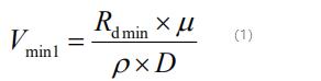 式中:Vmin1--基于雷諾數限制的工況流速下限,m/s;Rd min--為保證標稱準確度,所需非常小雷諾數;μ--流體在工況下的動力黏度,cP 或 mPa·s;ρ--流體工況密度,kg/m3;D--管道內徑,mm。對于黏度高于1cP的液體流量檢測或小于DN40的小口徑規格的選用,應不可省略雷諾數下限的核算。