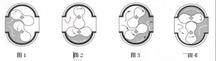 當被測流體流經(jīng)流量計時,流體的動壓力使進出口間形成一個差壓而推動腰輪旋轉。當流體推動一個腰輪順時針轉動時(如圖1)與之相連另一個腰輪逆時針轉動,轉動90°后成為(圖2)狀態(tài),腰輪受流體推動繼續(xù)轉動轉動時(圖2),與之相連的驅動齒輪帶動軸上的腰輪逆時針轉動,轉動135°后成為(圖3)狀態(tài),腰輪繼續(xù)轉動,腰輪旋轉360°時(圖4),有四倍于計量室有效有效容積的流體排除流量計。這樣,兩個腰輪交換驅動旋轉,隨著腰輪的轉動,流體徑有計量室不斷排出流量計。腰輪每轉一圈排出的流體體積是一個固定值,即排出流量于腰輪軸轉速成正比,通過腰輪軸及其他傳動機構,將旋轉的次數(shù)減速后傳遞到計算顯示部分。正是燃氣流量計的這種工作原理決定了這種流量計只要計量室內部配合間隙設計、組裝合理,它就會有較高的精度和較低的起步流量,這一特性在民用正常用氣時的計量精度,有克服了其它類型流量計對居民用氣低峰時微小氣量的無能為力。