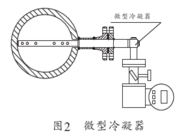 西斯特流量計本身自帶微型冷凝器(見圖2),可以一體化安裝或分體安裝。兩個微型冷凝器與探頭集合為一體,既容易保證正負壓冷凝液面等高(誤差在±1mm內),也使安裝變得更加簡單。試驗結果顯示,這種MT多用途探頭在一體化連接時,蒸汽通過微型冷凝器后進入差壓變送器膜盒時的溫度不會超過室溫,即使蒸汽溫度高達550℃。