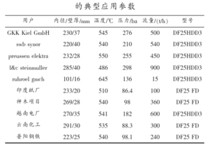 以上措施保證了探頭強度符合安全需求,使高溫高壓蒸汽測量成為現實。西斯特流量計在國內外主蒸汽測量方面的典型應用參數如表2所示。