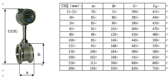 2、溫度補償一體型渦街流量計還帶有溫度傳感器,可以直接測量出飽和蒸汽的溫度并計算出壓力,從而顯示飽和蒸汽的質(zhì)量流量。