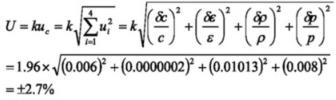對于天然氣而言,可膨脹性系數(shù)的不確定度為:δε/ε=±4(Δp/pi)%