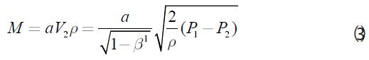 由于管道內部流動液體為不可壓縮液體,因此其p1=p2=p,根據流體定義確定質量流量與差壓的關系是為: