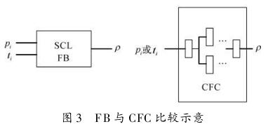 對于PCS7控制系統,可自定義功能塊FB,在FB中通過文本化的高級編程語言編寫應用程序,通過調用該功能塊來實現密度計算。由于正常使用時,自定義功能塊編譯下載過程中系統會提示停止CPU,不利于安全生產,因此對于重要裝置建議在CFC(Continuous Function Chart)中編寫程序,可以在線下載。與FB不同,CFC采用各種運算功能塊搭建而成,其優點是直觀、明了,缺點是功能塊多,搭建繁瑣。在CFC中編寫程序,可以在保證蒸汽計量精度的情況下進一步簡化程序:工藝要縮小蒸汽變化的范圍;盡量以壓力或溫度中的一個影響較大的參數作為計算密度函數中的變量。FB與CFC比較示意如圖3所示。
