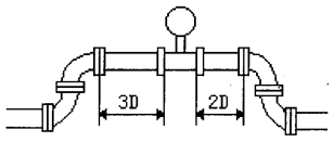 壓縮機空氣流量計由于其獨特的性能,一直受到人們重視,并己到了廣泛的應用,但仍有兩個方面的問題困擾著人們,一是由于儀表上游管道阻流件的干擾,流場發生畸變,影響旋渦正常撥離。為了克服流場擾動,儀表前需要配裝較長直管道(一般為15~40倍的工藝管內徑的長度),而在實際現場是很難滿足的。二是,壓縮機空氣流量計主要特點之一是量程寬,一般在10:1左右,應該說這樣寬的測量范圍應屬比較優良的性能,但在實際工業應用中,*大流量遠低于儀表的上限值,*小流量又往往會低于儀表的下限值,一些儀表經常工作在下限流量附近,造成儀表的計量準確度下降,這時信號較弱,儀表的抗干擾能力也下降。為了測量小流量,人們往往采用內腔形狀為園臺的傳統變徑管,經過縮徑提高測量處的流速。使壓縮機空氣流量計工作在正常流速范圍內,但這種變徑方式,結構尺寸大(一般長度為工藝管內徑的3~5倍),同時,由于流體流經變徑管,在變徑處產生大量旋轉流團,增大局部阻力損失,也使流場發生畸變。所以必須在變徑管與儀表之間加裝大于15倍工藝管內徑長度的直管道進行整流,且增加了沿程阻力損失(如圖1所示),這種方法增加施工成本,也給加工、安裝帶來不便。